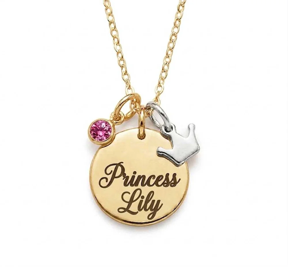 Designed to celebrate the moments and messages that mean the most, this gold-tone personalised necklace is a beautiful way to keep something special close. Whether engraved with a name, date or heartfelt words, it becomes a meaningful keepsake made just for you or someone you love. The mirror-polished disc pendant is custom laser engraved for a clean, lasting finish, while the gold-tone heart charm adds a warm and elegant detail. For an extra personal touch, a birthstone charm can also be added as an optional extra. Made from durable stainless steel and finished with a classic cable chain, this necklace is designed for everyday wear and lasting sentiment. You can also add our QR code feature as an optional extra to create an even deeper connection to the story behind your jewellery. Please note that the birthstone charm and QR code feature are not included as standard.